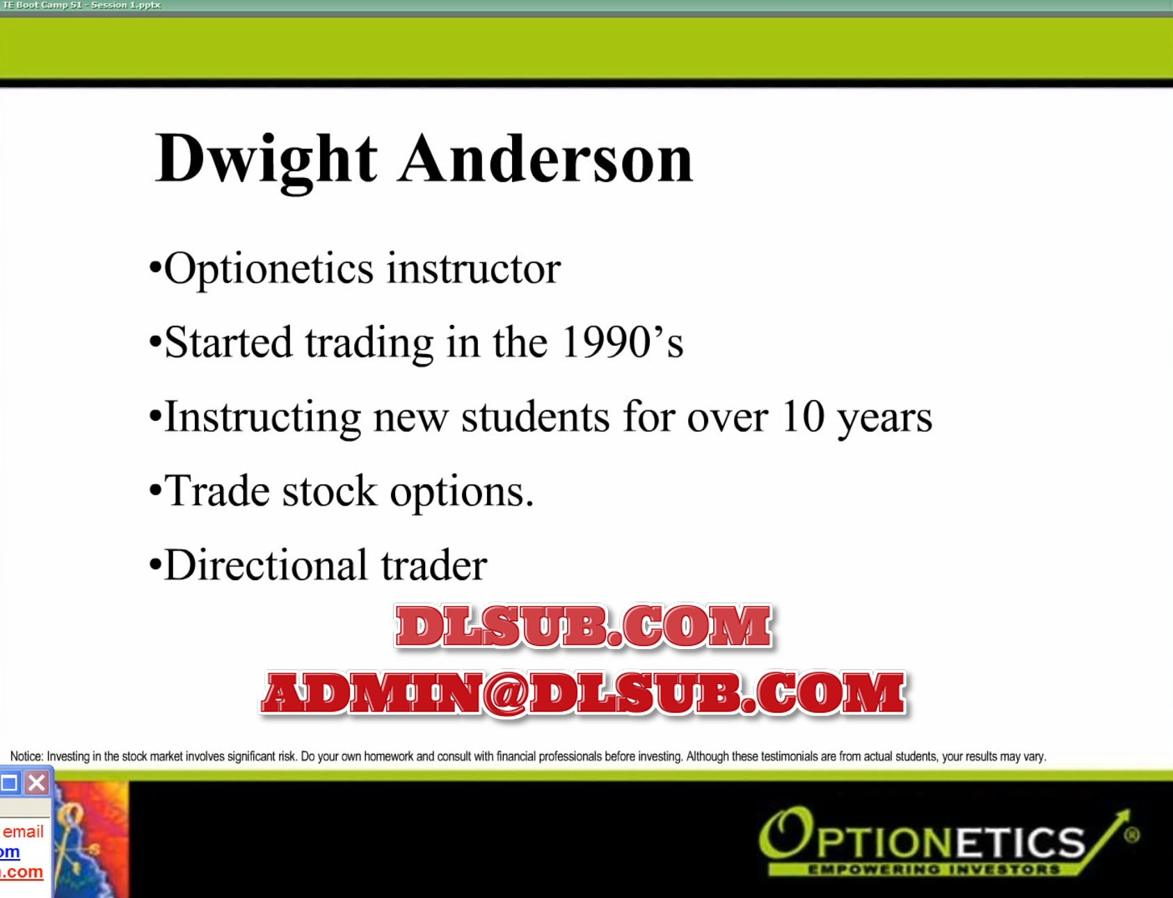 Optionetics Trading Essentials Bootcamp Coaching Dwight Anderson Tec04 2010 Usd 1495
