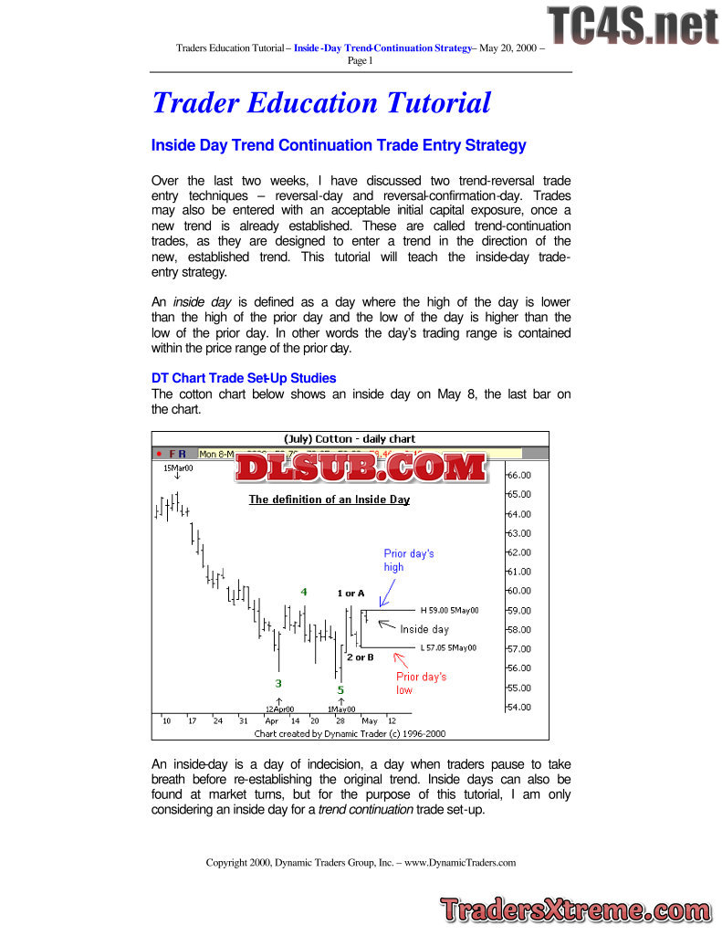 Cynamic Trader Inside Day Trend Continuation Patterns - JPG Image File